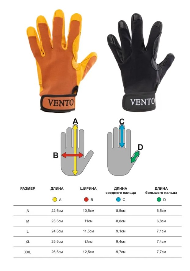 Защита ладони и пальцев обеспечивается благодаря двойному слою натуральной кожи. Верхняя часть перчатки выполнена из дышащего, эластичного нейлона. Манжеты из тонкого неопрена с застежкой на липучке позволяют регулировать обхват кисти руки.