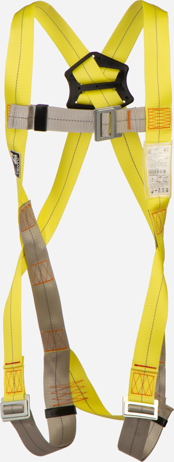 Страховочная точка крепления расположена на спине. Ее можно передвигать по вертикали на Х-образных плечевых лямках для корректировки правильного положения под рост пользователя.